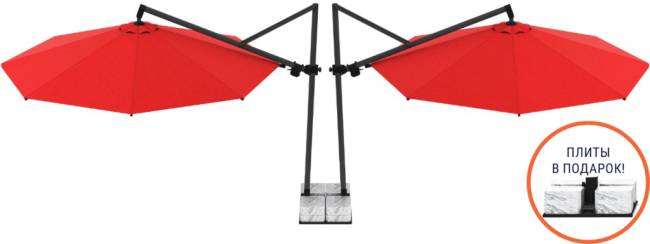 Banana Plus Double- новейшая модель двухкупольного зонта компанииTHEUMBRELA, которая предлагает ещебольше затенения. Две опоры и два зонта, открывающиеся по бокам, обеспечивают затененную уютную атмосферу на любых открытых площадках. Алюминиевая конструкция, европейская ткань и утяжелительная база гарантируют простое использование. Зонт сочетает всебе высококачественные материалы, впечатляющие технологии и простое управление. Это особенный продукт для тех, кто ищет крутой дизайн, стильный внешний вид и функциональность среди зонтов с боковой опорой. Благодаря утяжелительной базеобеспечивается достаточный баланс и давление.Зонты можно открывать независимо друг от друга при помощи рукоятки, а сами механизмы блокируются для безопасности. Качество вашего пространства будет повышено с помощью зонта Banana Plus Double, который является очень эстетичным и ярким решением для больших пространств. Особенности: Две опоры сечением 70х70 мм и толщиной стенки 2.5 мм выполненыиз окрашенного алюминия со специальной термообработкой, которая повышаетпрочность и коррозионную стойкость зонта. В каждом куполе 8 спиц из алюминия сечением20х30 мм и толщиной стенки 2.2 мм. Прочные пластиковые детали и соединительные элементы. Два купола размером Ø3500 мм каждый. Расстояние между куполами - 1100 мм. В комплект входит металлическая базана колесах с тормозами,размер: 790х710х60 мм,с мраморными утяжелителями, размер: 340х340х120 мм. Вес базы 24 кг, каждый утяжелитель 34 кг. Общий вес базы 160 кг. Размер упаковки: 850х750х100 мм. Возможно выполнение куполовиз тканей: бежевый полиэстер, олефин. Цвет купола из ткани олефин можно выбрать из представленной палитры. Дополнительно приобретаются: функциявращения на 360º, комплект из 4-х светильников с пультом дистанционного управления. Обращаем Ваше внимание! Плиты идут в подарок к зонту! В норме допускаются незначительные сколы и царапины мрамора по периметру, т.к. мрамор - это природный материал.На плиты рекламации не принимаются, Вы имеете право безвозмездно отказаться от них. Открыть инструкцию поэксплуатации уличных зонтов. Цена на сайте указана за модель с куполамииз ткани олефин. Цены на другие модели Вы можете уточнить у менеджеров.